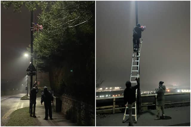 It is launching a GoFundMe campaign that has raised almost £1,000. A rival organization claims it has removed hundreds of flags from public property, including lampposts.