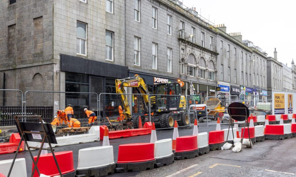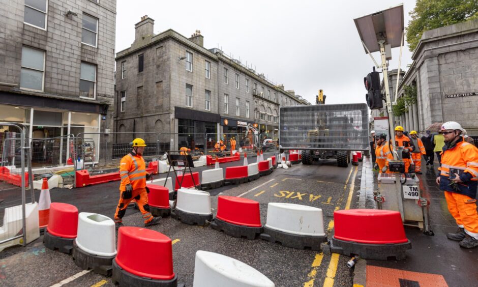 Images show taxis and cyclists as Union Street roadworks progress