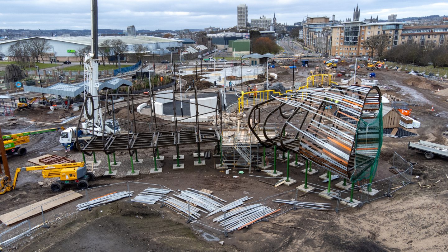 New images reveal futuristic playpark coming to life at Aberdeen Beach.